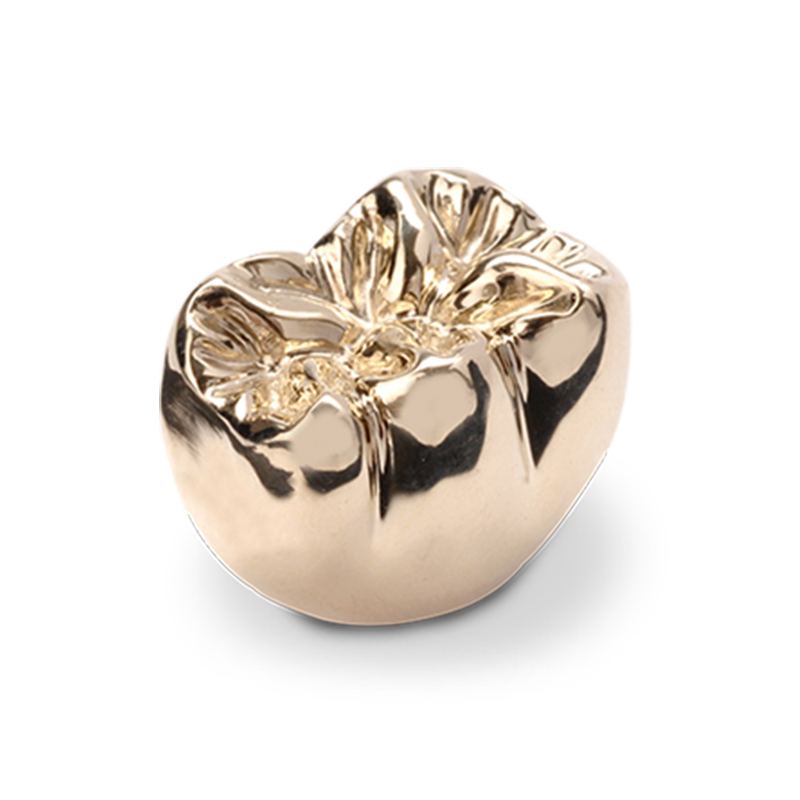 Full Gold restorations have routinely been used in the dental field for many years. They can be used for many restorations such as crowns, bridges, inlays/onlays, and consist of either non-precious or precious gold alloys. The Full Gold crowns key attribute is its longevity and significantly minimal risk of fracture. It is also very gentle on the opposing teeth, similar to natural teeth, as opposed to porcelain restorations. With high biocompatibility, no other restoration can deliver the dependable results of this material.